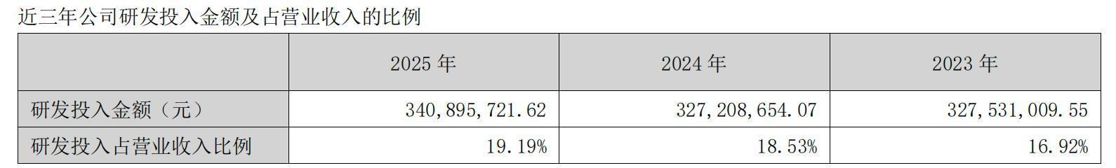 持续的研发投入为天阳科技筑牢技术根基。报告期内,为加强技术创新及保持技术领先优势,提升核心竞争力,天阳科技的研发投入达3.41亿元。且近两年来,公司的研发投入率呈连续增长态势,数据显示,2023年至2025年天阳科技的研发投入率分别为16.92%、18.53%、19.19%。