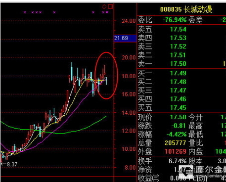 2、在顶部出现,是见顶信号,见到这个信号,要卖出股票;