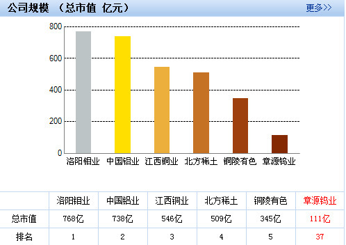 章源钨业目前总市值111亿,在有色企业中算是非常小的,盘小好啊!